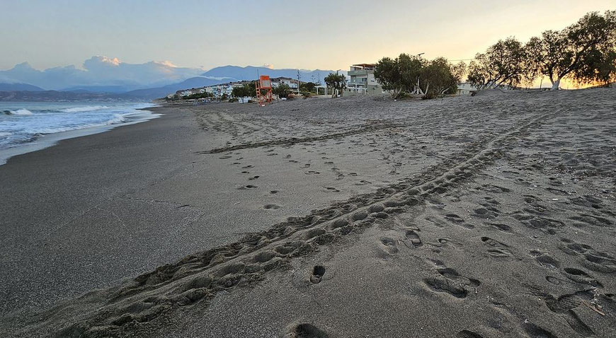 Schildpadpatrouille. Eén keer gaan we extra vroeg uit de veren. We gaan op turtle survey of schildpad-patrol. Samen met de vrijwilligers van Archelon verkennen we Kommos Beach waar ’s nachts schildpadden hun nesten maken. Met een beetje geluk vinden we een nest en maken we een relocatie mee.